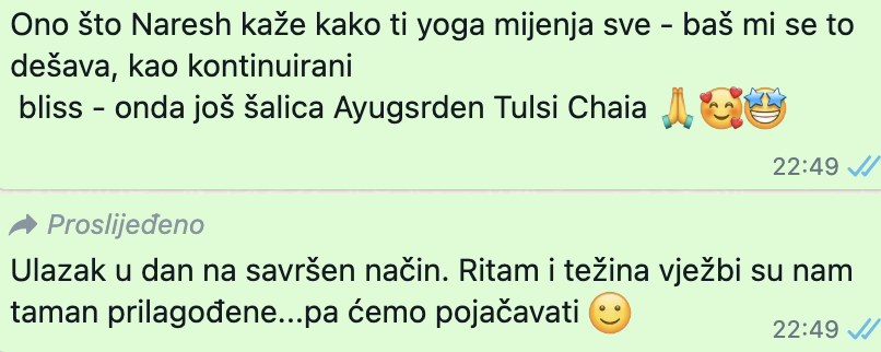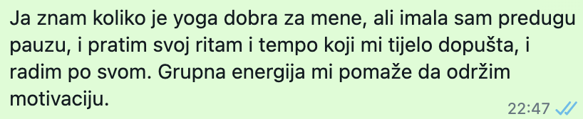 Yoga Praksa se snima, nakon svakog susreta šaljemo svima snimku na mail. Svatko tako dobiva priliku odraditi u svom vlastitom ritmu bilo kada tijekom dana.