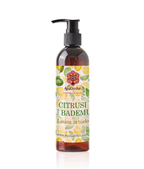 Napomena: Koristite ga tijekom zime i hladnijeg perioda. Ljeti, kada tijelo izlažemo suncu, ne koristiti ovaj losion jer su eterična ulja citrusa fototoksična i ne reagiraju dobro direktno izložena suncu (Mogu nastati mrlje na koži).