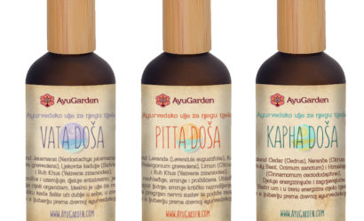Paket uključuje: Ayurvedsko aromatično ulje za njegu tijela/ VATA / 100ml Mirisni blend Jatamamsi, Palo Santo, Ljekovita Kadulja i Ruh Khus Ayurvedsko aromatično ulje za njegu tijela / PITTA / 100ml Mirisni blend Lavande, Kashmira, Ruže Geranij, Limuna i Ruh Khus Ayurvedsko aromatično ulje za njegu tijela / KAPHA / 100ml Mirisni blend Cedra, Naranče, … Nastavi čitati Paket ulja za masažu