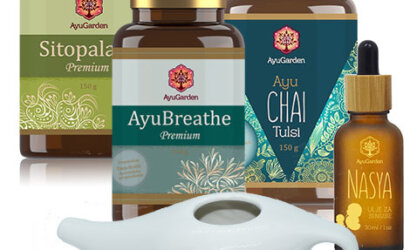 Djeluj preventivno! Izuzetno je važno da sluznica nije isušena jer takva pogoduje širenju virusa. Ayurveda zagovara svakodnevnu preventivnu njegu sinusa i dišnih puteva, uz Neti posudicu, Nasya ulje, te još nekoliko biljnih pripravaka. AyuGarden je kreirao pakete za djecu i odrasle koje drevna Ayurveda koristi za olakšavanje problema sa začepljenim dišnim putevima, virozama, sinusima, alergijama, glavoboljama … Nastavi čitati Paketi za lakše disanje i njegu sinusa